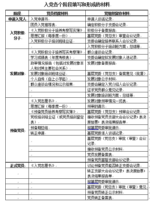 入党需要经过的阶段和程序及形成材料