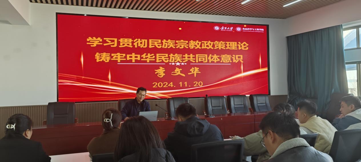 为深入学习贯彻习近平总书记关于加强和改进民族工作的重要思想,铸牢中华民族共同体意识,推进新时代党的民族工作高质量发展,11月 20 日,午夜av 组织开展了民族宗教政策理论专题宣讲活动。本次活动由学院党总支副书记李文华进行宣讲,学院全体教职工参加了此次活动。