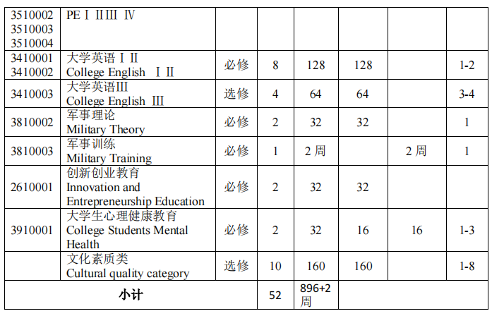 注:利用寒暑假进行顶岗实习,未按照学分比例计入实践学分中。