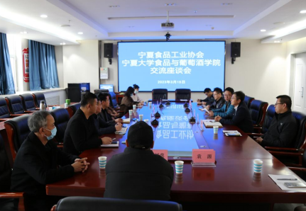 为深度推进校企产学研合作,发挥高校服务自治区“六特”产业高质量发展人才技术及产教融合育人优势,落实推进本科生、研究生拓岗就业工作,2023年3月15日,食品与葡萄酒学院邀请宁夏食品工业协会秘书长徐宏杰、协会顾问杨树虎、夏进乳业集团股份有限公司总经理黄学、盐池县鑫海食品有限公司董事长陈海、昊王米业集团总经理王建华、志辉源石葡萄酒庄有限公司总经理袁园、爱芙帝科技有限公司总经理卜兴华一行来我院交流座谈。院党委书记张宁、副院长张军翔、方海田、王松磊及教师代表刘敦华、剧柠、范艳丽、章中、魏超昆、金刚、曹松敏与各位企业家进行了沟通讨论。