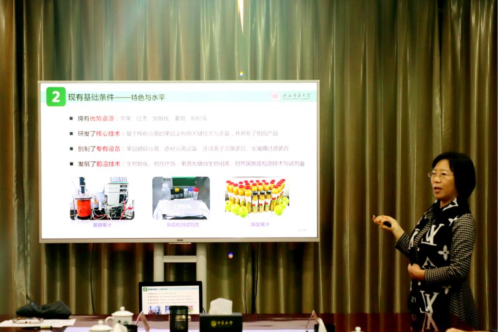 其次,郭玉蓉主任从背景与意义、单位概况与建设条件、主要目标与任务、管理与运行机制、项目投资及经济与社会效益等六个方面介绍了西部果品资源高值利用(教育部)工程研究中心的概况,并表示通过果品加工业的带动作用,进一步壮大西部果业,实现“果业强、果农富、果乡美”的目标。