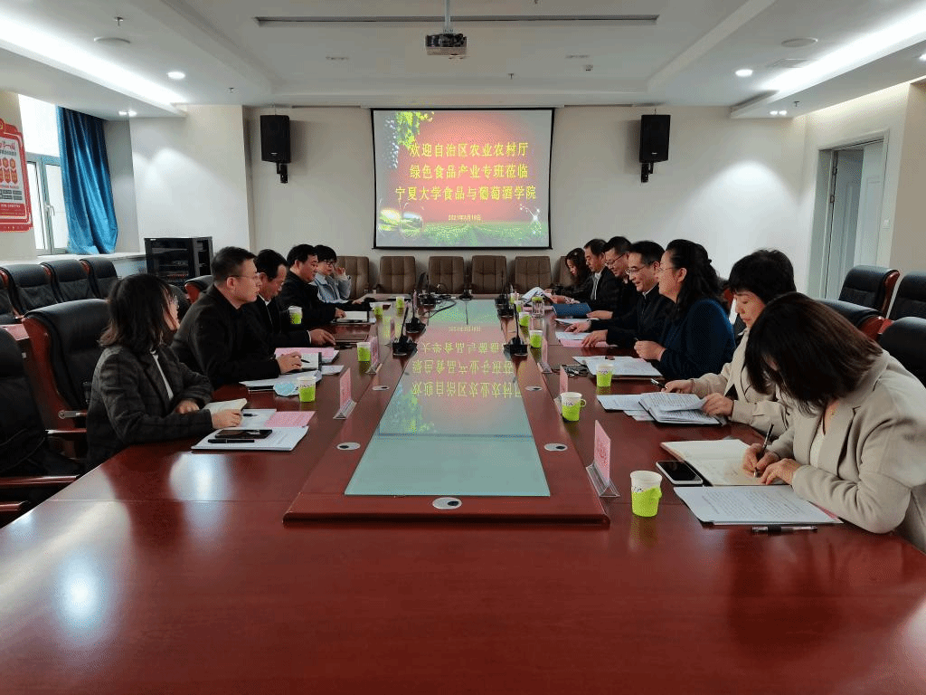 自治区农业农村厅绿色食品产业工作专班王生林副厅长一行5人参加座谈会。我校史金龙副校长、食品与葡萄酒学院张亚红院长、方海田副院长,农学院王建宇副院长,食品与葡萄酒学院张惠玲教授、刘敦华教授、范艳丽博士等一同参加座谈交流。会议由张亚红院长主持。