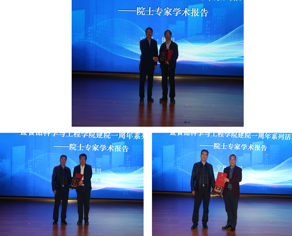 演讲结束后,报告主持人代表学校分别向院士专家颁发了贺兰山学术讲座证书,并赠送了纪念牌。