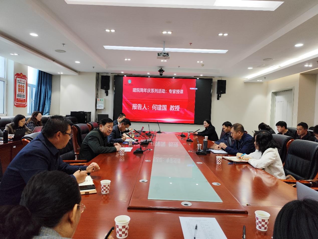 会议开始,何建国教授受邀为全院教师进行了建院周年庆系列活动——专家教授专题讲座。何建国教授结合自己的成长经历和工作经验,主要围绕如何成为学校的一名好员工,如何成为一名好教师,如何成为有能力的优秀教师,青年教师如何发展,以及高校教师一定要有团结协作的合作精神等方面进行了交流指导。此次授课对提升教师职业道德、能力素养和职业归属感,以及学院高质量发展具有重要意义。