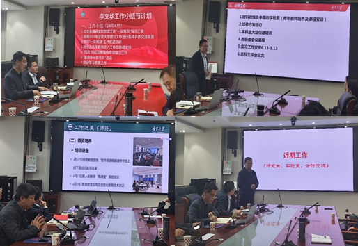 接着,学院8个教学科研团队代表就本团队4月份的工作总结进行了汇报,详细介绍了各团队在人才培养、科学研究、社会服务、团队建设方面的工作进展。