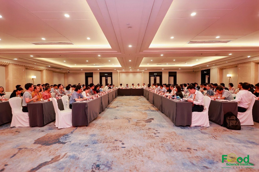 “食品营养健康与创新未来研讨会”的大会开幕式由农科院院长林福呈主持,浙江省科学技术协会副主席曾肖芃、中国食品科学技术学会名誉理事长孟素荷、中国农业科学院副院长刘现武、中国农村技术开发中心副主任张辉、农业农村部乡村产业发展司(农产品加工指导司)农产品加工处处长梁苗分别致辞。研讨会共安排了22场报告,我院院长刘源教授受邀担任报告会场主持并做精彩演讲。同日下午召开“全国农产品加工院所长座谈会”,我院院长受邀参会,与41家科研院所和30家高校的农产品加工院所长代表共同商讨新质生产力对引领未来食品营养健康科技创新的重要作用。