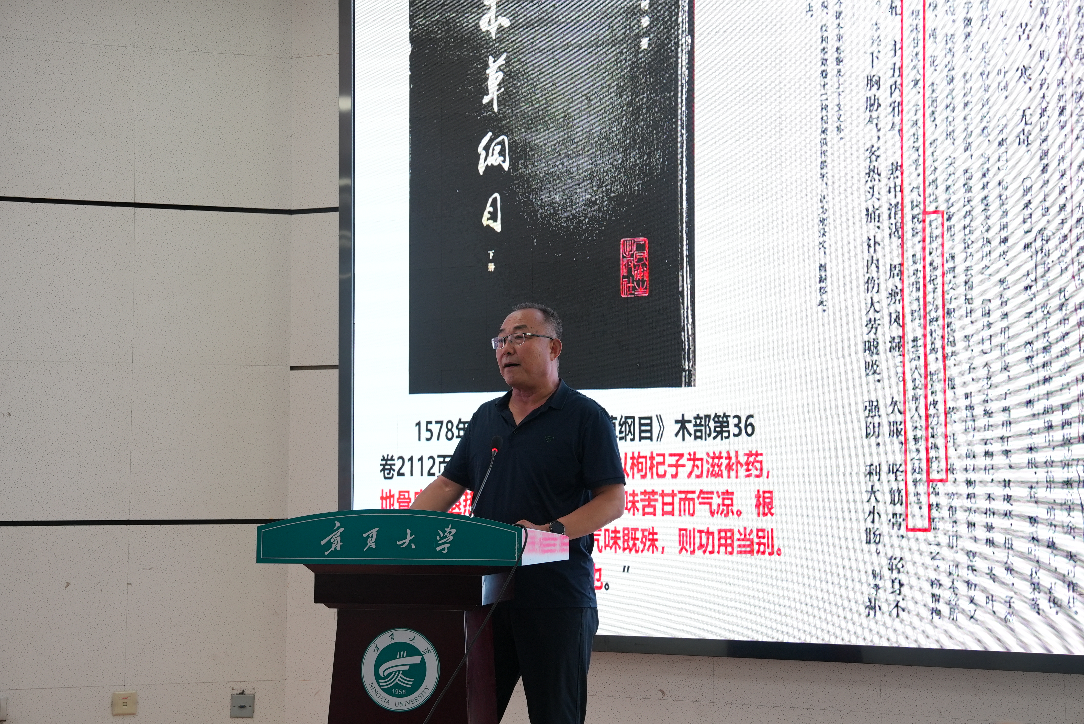 贺兰山校区文荟楼东报告厅成功举行。本次论坛由学院青年教师潘琳主持,论坛围绕宁夏枸杞的传承、科技创新与产业升级展开深入交流,吸引了众多师生、行业从业者代表参与。