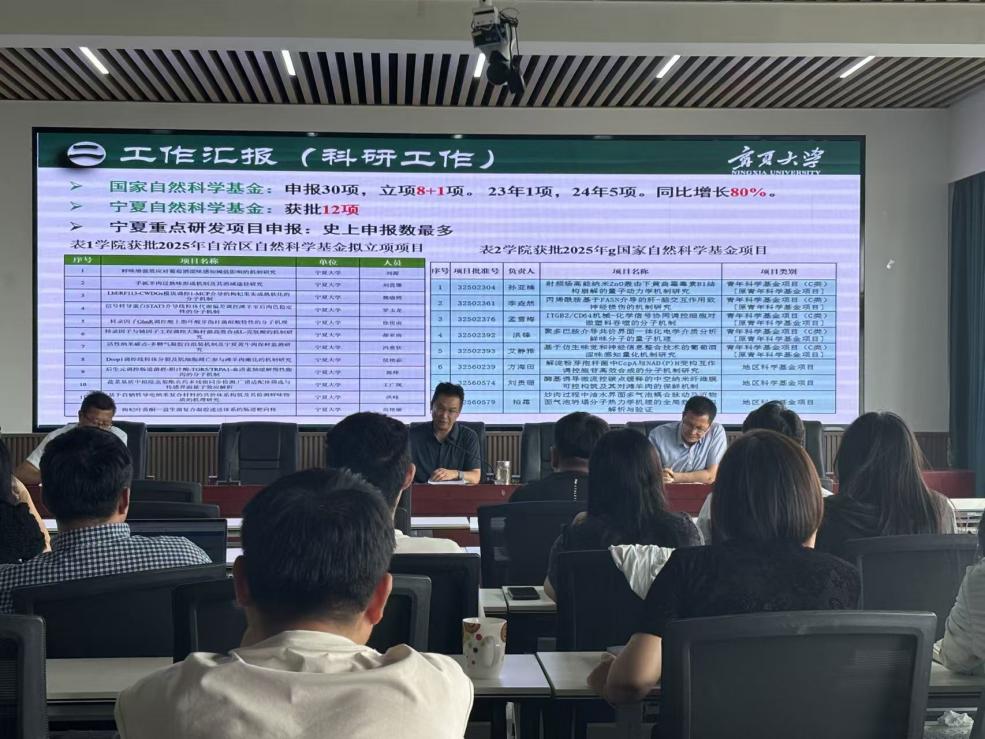 同时,李文华书记就刘源院长负责的工作代为汇报。他对上半年学院在学科建设、科研研究、合作交流、人才引育等方面取得成绩和开展的工作进行了全面总结,重点通报了学院在国家自然科学基金和宁夏自然科学基金申报方面取得的突破,强调博士点申报的重要性,并指出学院要继续通过主办、协办高水平学术论坛和会议,积极扩大对外影响力,推动师资队伍引进与培养,进一步提升科研核心竞争力。