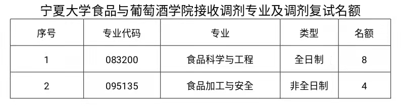 食品与葡萄酒学院接收调剂专业、调剂名额附后。