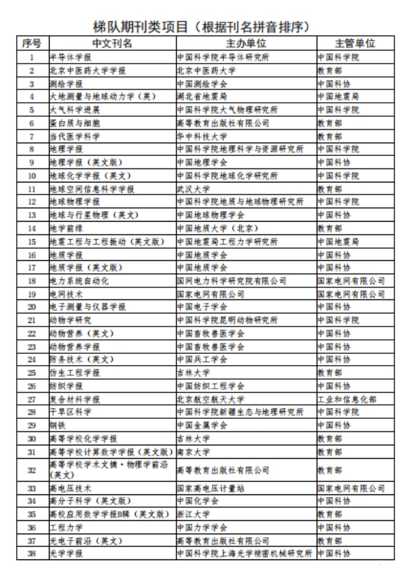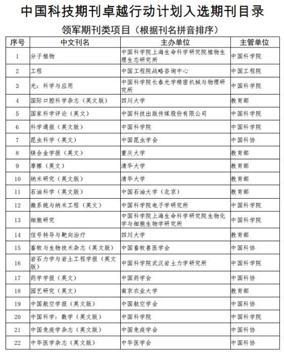 附件一 2020年中国科技期刊卓越行动计划入选期刊目录