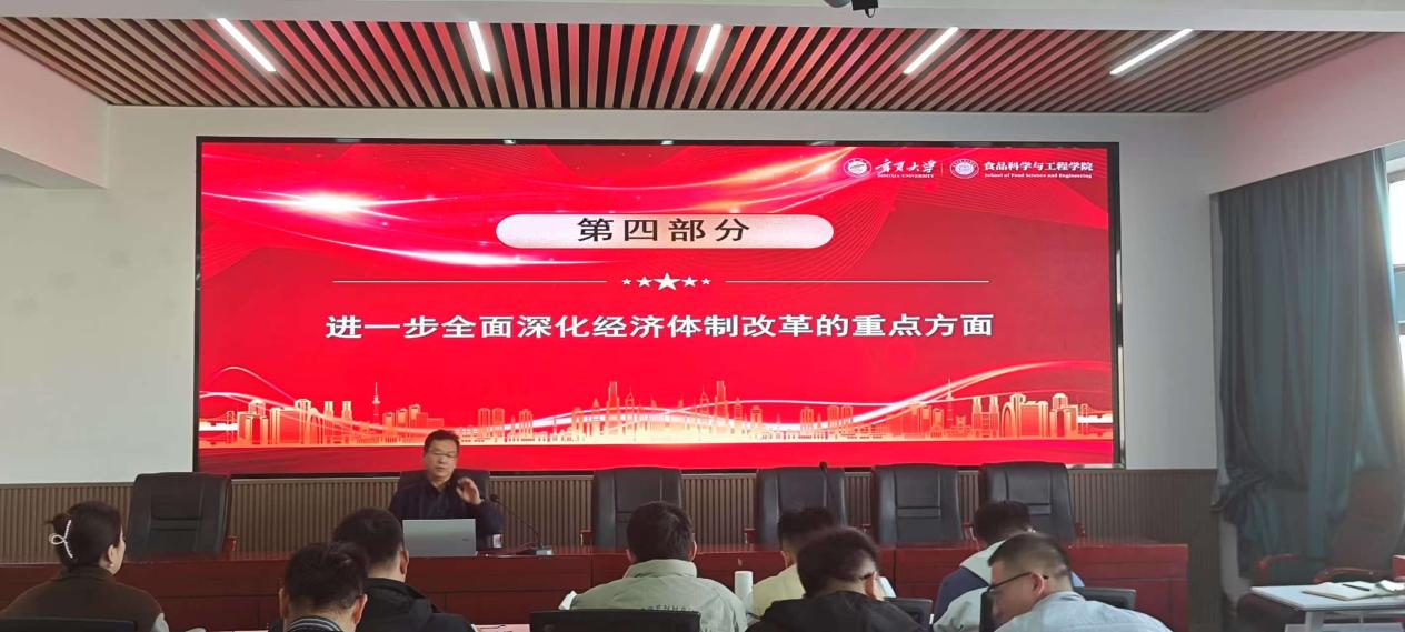 最后,关于进一步深化经济体制改革的重要方面,李文华结合实际案例与数据,深入浅出地分析了经济体制改革在优化资源配置、激发市场活力、推动创新发展等方面的关键举措与预期成效,引导教职工们思考如何在学院的学科建设、人才培养以及产学研合作等工作中积极融入经济发展大势,为培养适应新时代经济社会需求的高素质人才贡献力量。