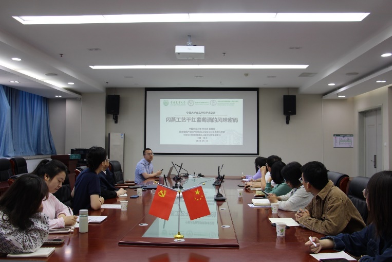 报告从闪蒸工艺的研究背景、闪蒸葡萄酒的感官特征、物质基础以及应用前景三方面进行了介绍。会后学院师生就报告内容结合自身课题开展交流讨论。通过本次学术报告,我院师生进一步拓宽了食品加工领域的研究视野。