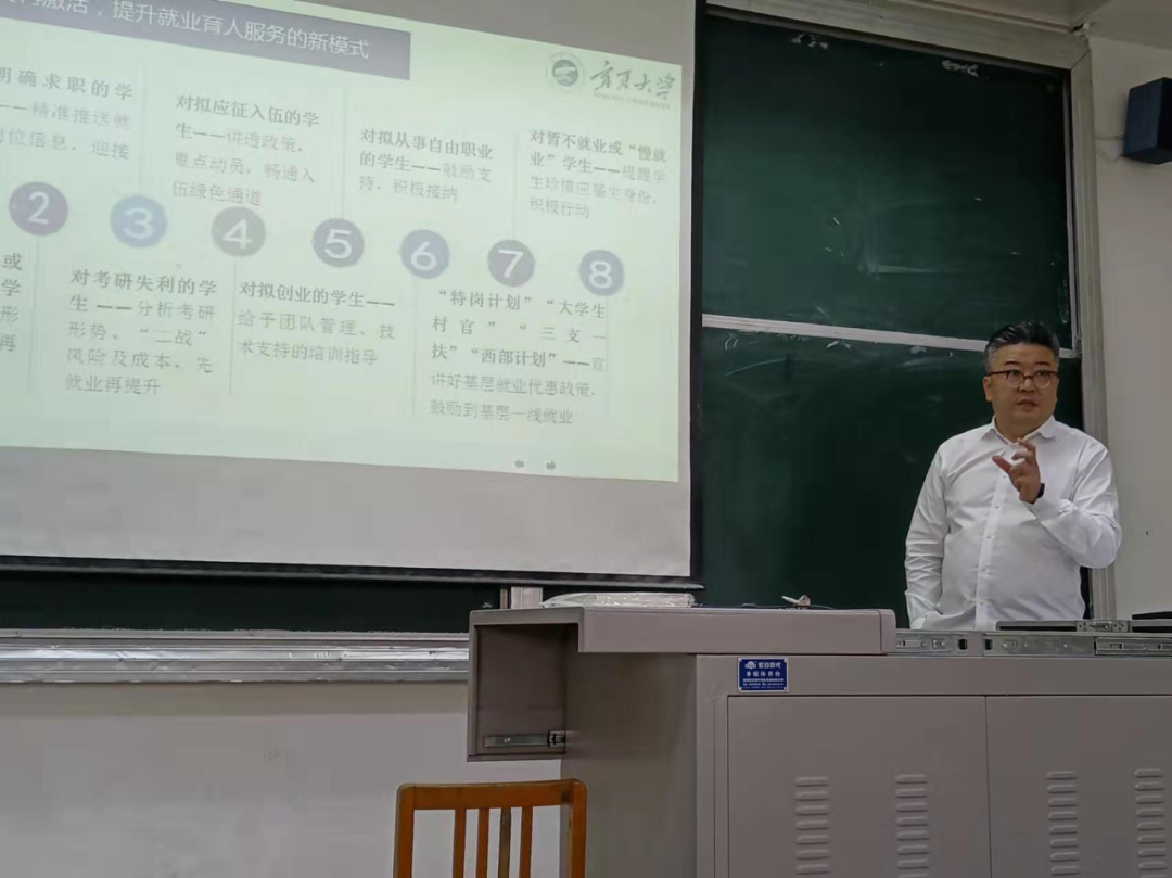 马书记首先根据学校多年和用人单位合作的经验,结合实际情况和近几年我院就业数据,就2022届毕业生的就业形势做了分析,发现有“慢就业”的现象。马书记用鲜活的案例引导同学们一定要重视校园招聘会,鼓励同学们抓住每一次机遇,重视每一次选择,并提出了先就业—再提升—再择业的观点,要给自己制定planB,除了着眼公考外,还要用余光关注企业招聘信息,为自己留有备选道路。随后,马书记向同学们阐述了考公的前景与优缺点,他强调公考的备考需要极大地毅力和持久的恒心,希望同学们可以静下心来认真准备。最后,马书记与同学们深入交流,了解同学们备考时的切实需求,并表示学院会努力为大家提供帮助。
